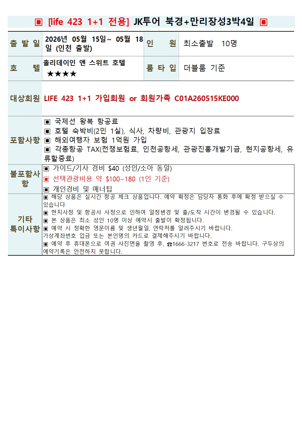 ¡Úlife423 1+1 ȸ¿ø Àü¿ë 26³â05¿ù15 ÀÏ~26³â 05¿ù 18ÀÏ 3¹Ú4ÀÏ Áß±¹ ºÏ°æ